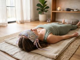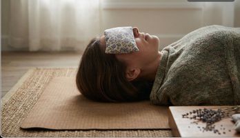 The gentle weight of an eye pillow during savasana.